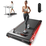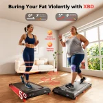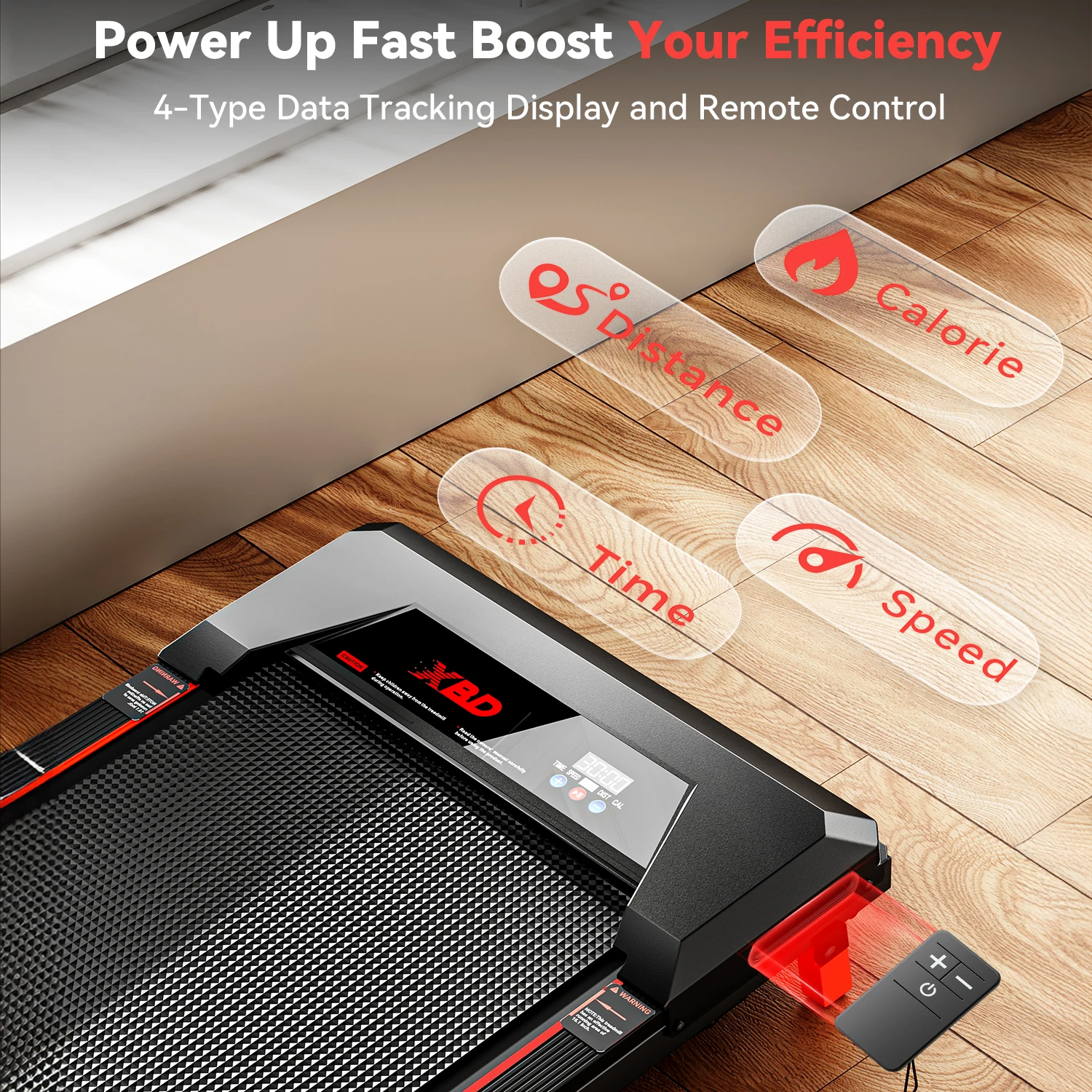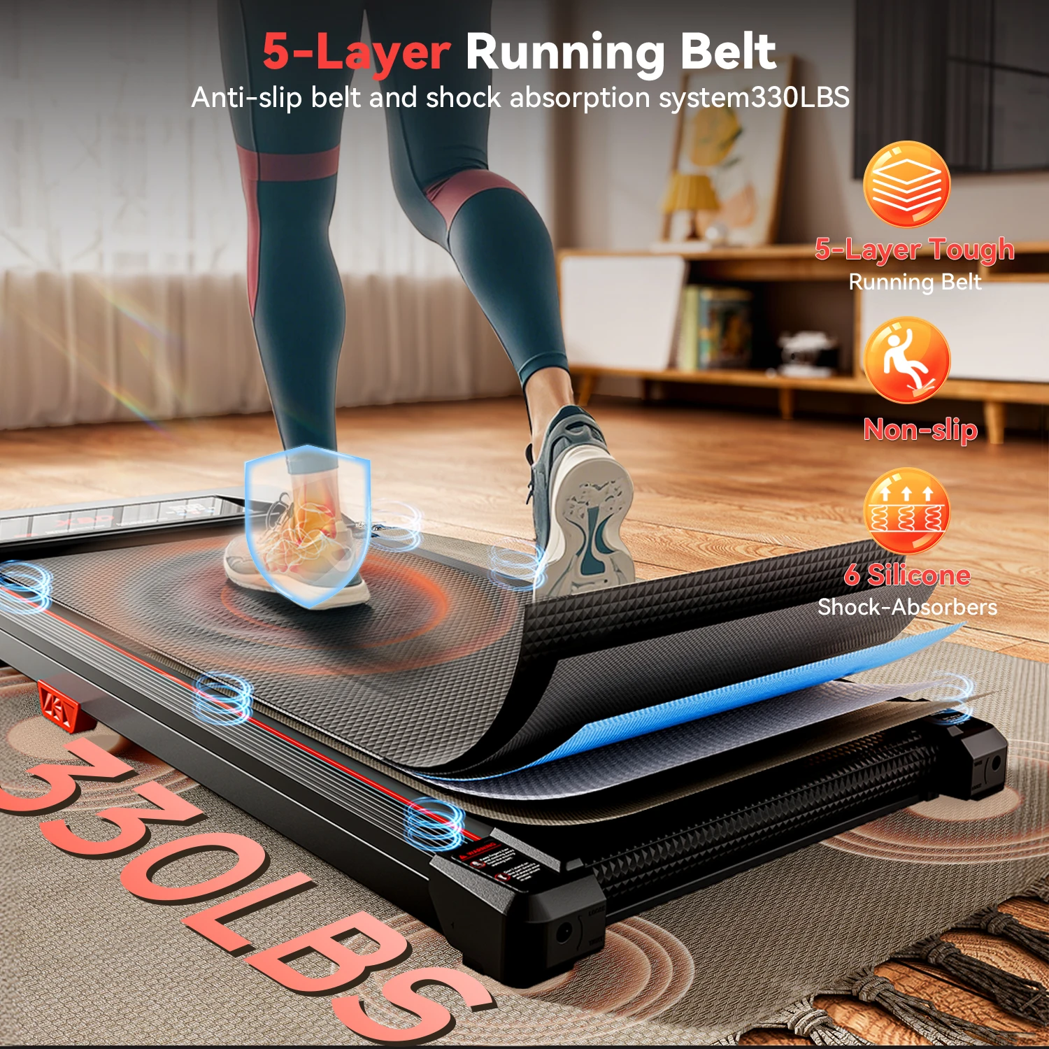 - Mobile Fitness Partner: Compact treadmill equipped with 2 wheels on the bottom, you can easily move it from your bedroom to your living room to truly work out anywhere. Just only 3.5 inches thick, can be easily stored under the bed when not in use