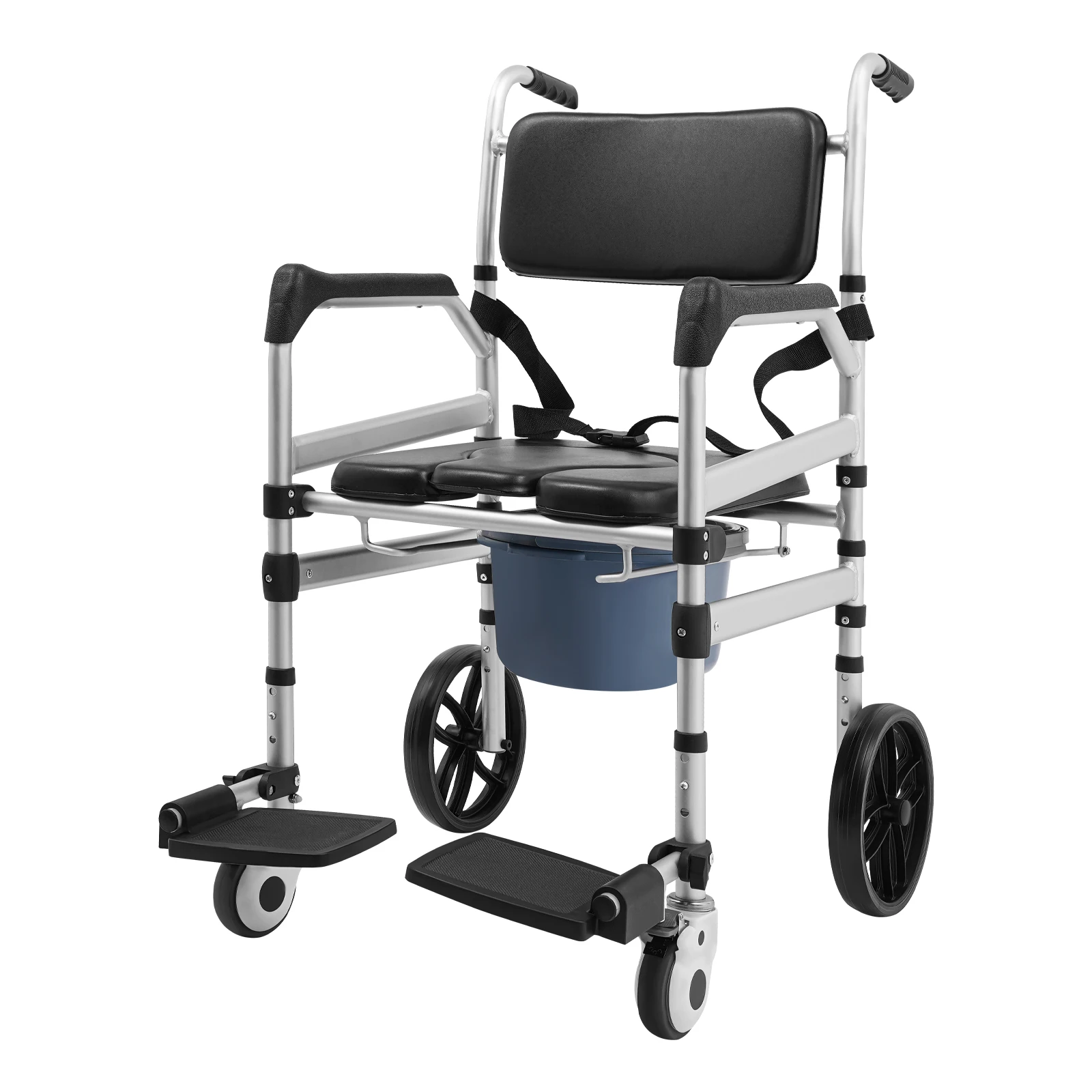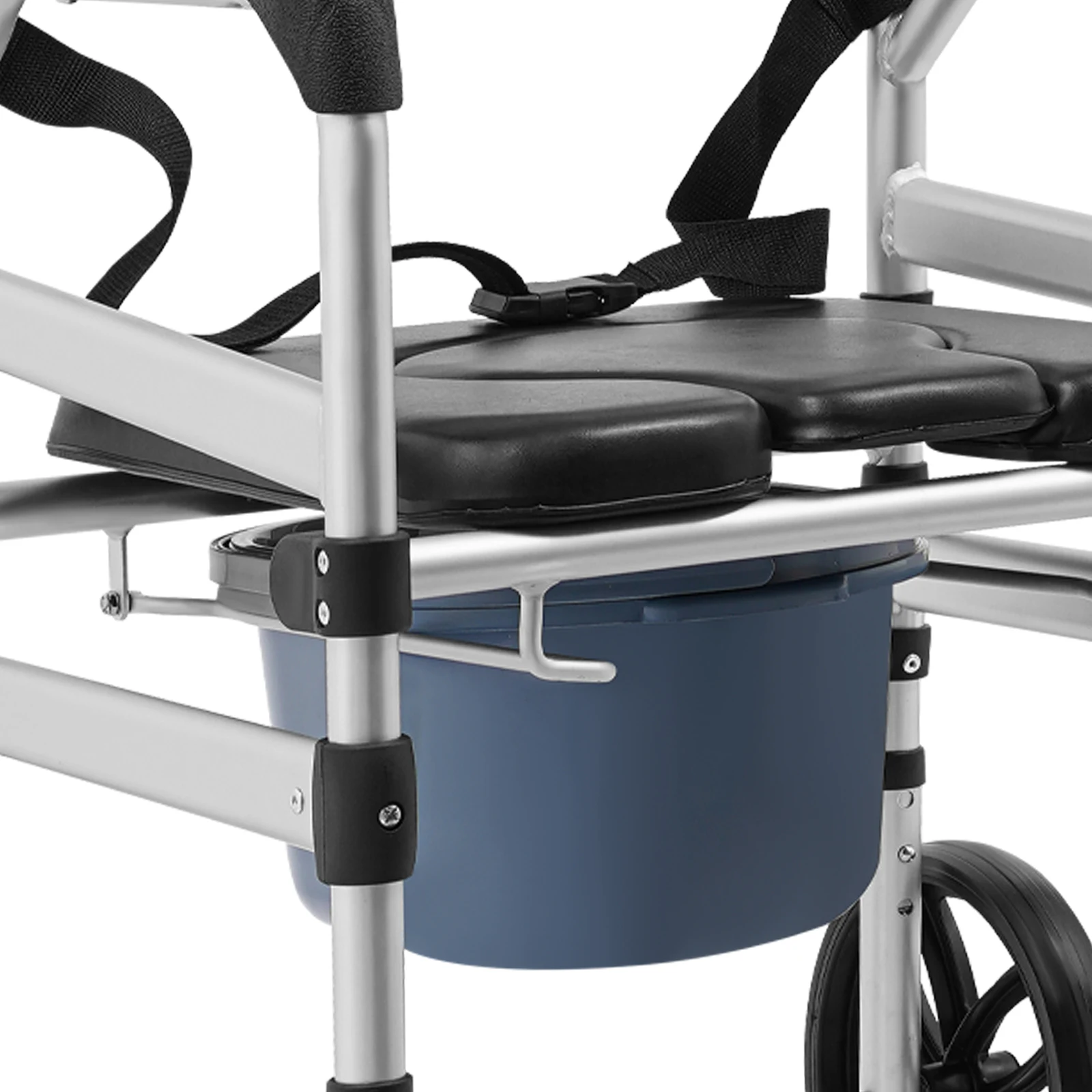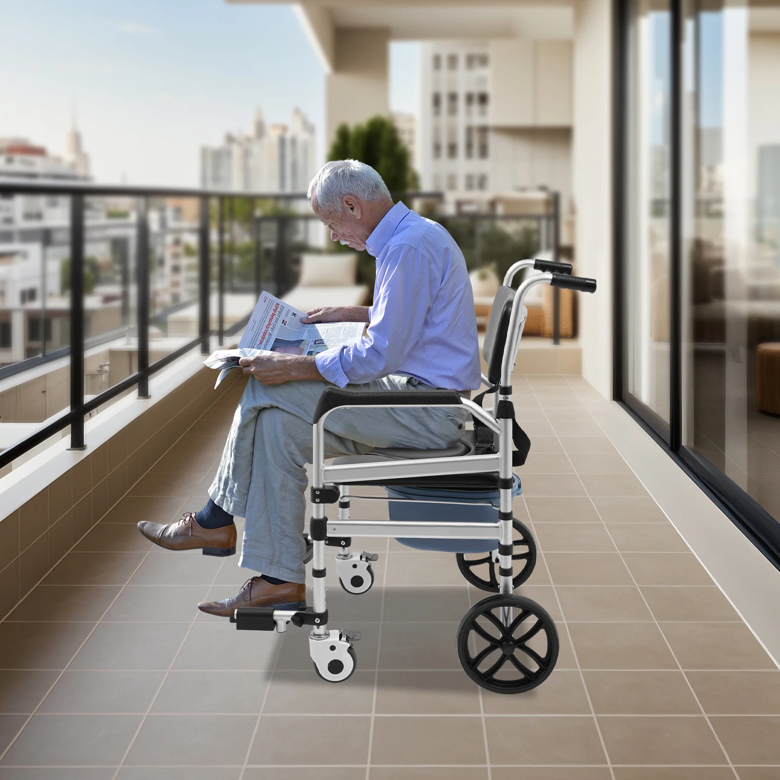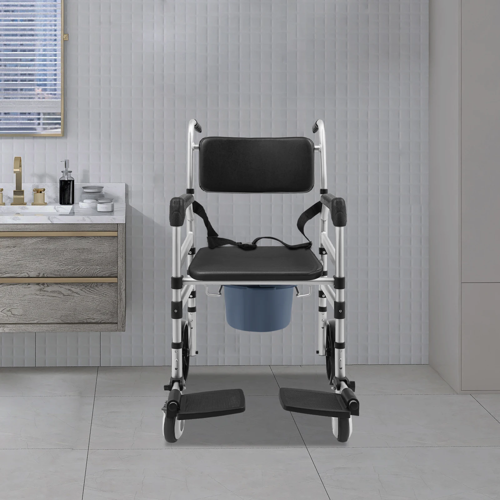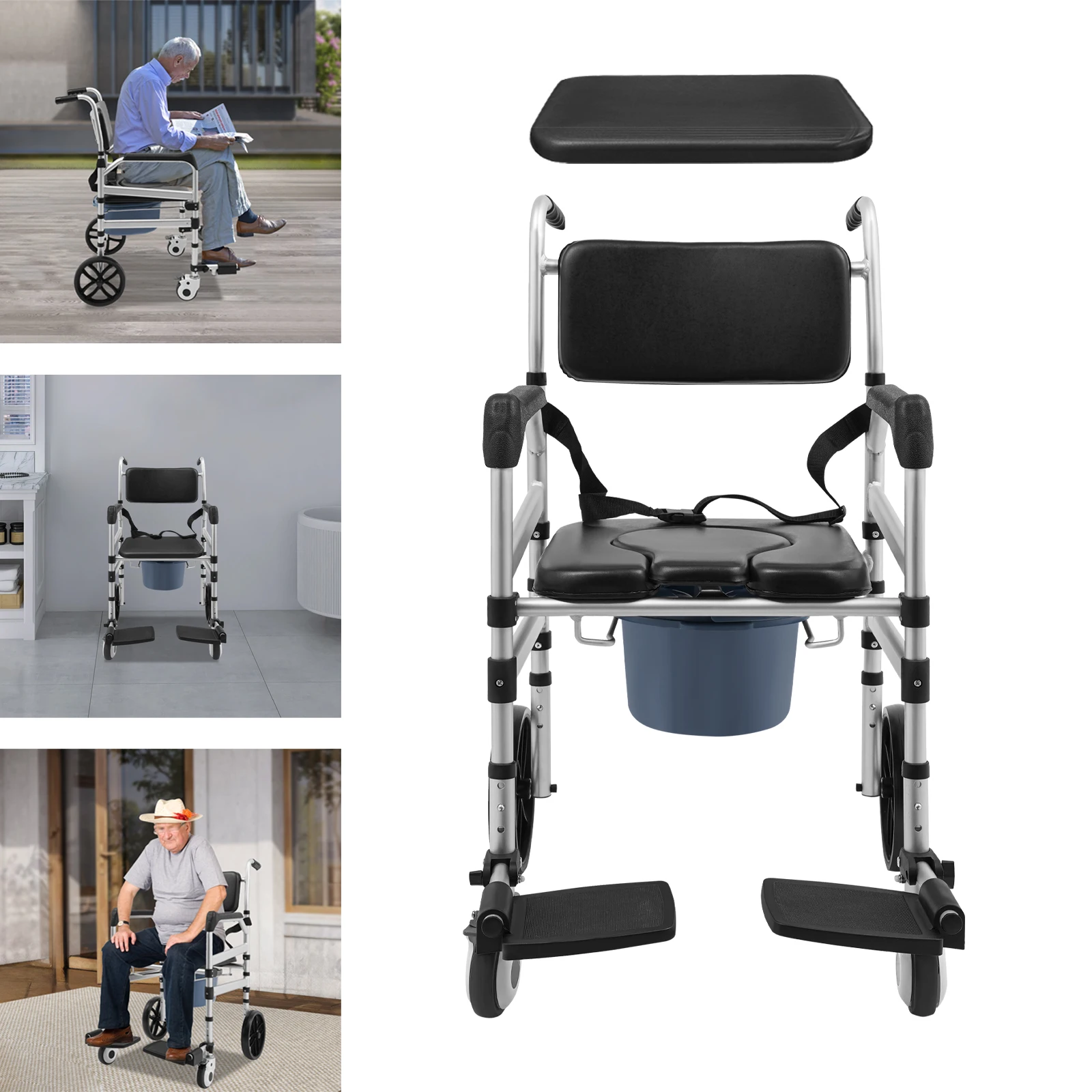 Multi-function: In addition to being a shower chair, it can be placed next to your bed and used as a bedside toilet, placed directly on the toilet, or used as a transport wheelchair to extend the user’s range of motion.