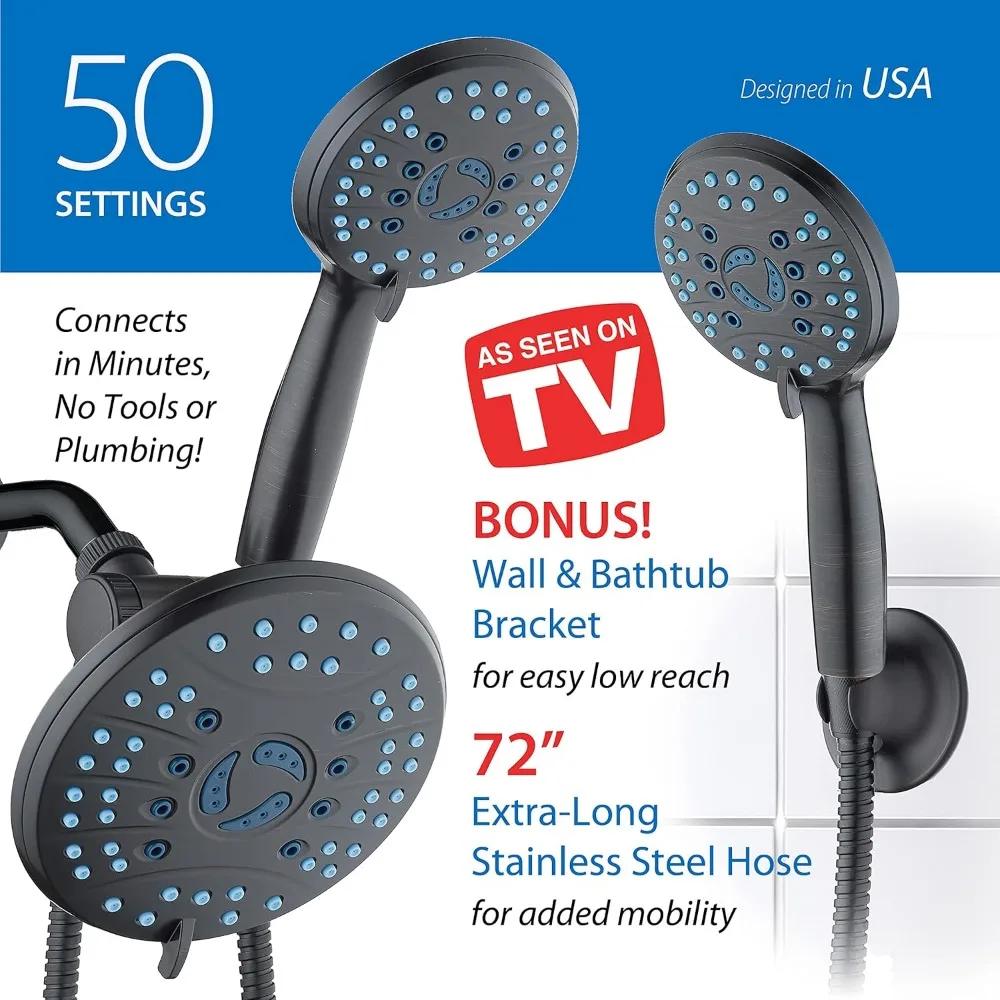 • MORE WATER PRESSURE, CLEANER SHOWER – Features advanced 8-setting 5-zone Hand Shower and giant 6-setting 7″ shower head that can be used separately or together. Both heads have Anti-clog Nozzles that prevent accumulation of grime inside. So while other showerheads clog and loose water pressure over time, AquaCare nozzles remain clean and clog-free for years of flawless performance. Designed in USA, patent pending. Premium Oil Rubbed Bronze finish.