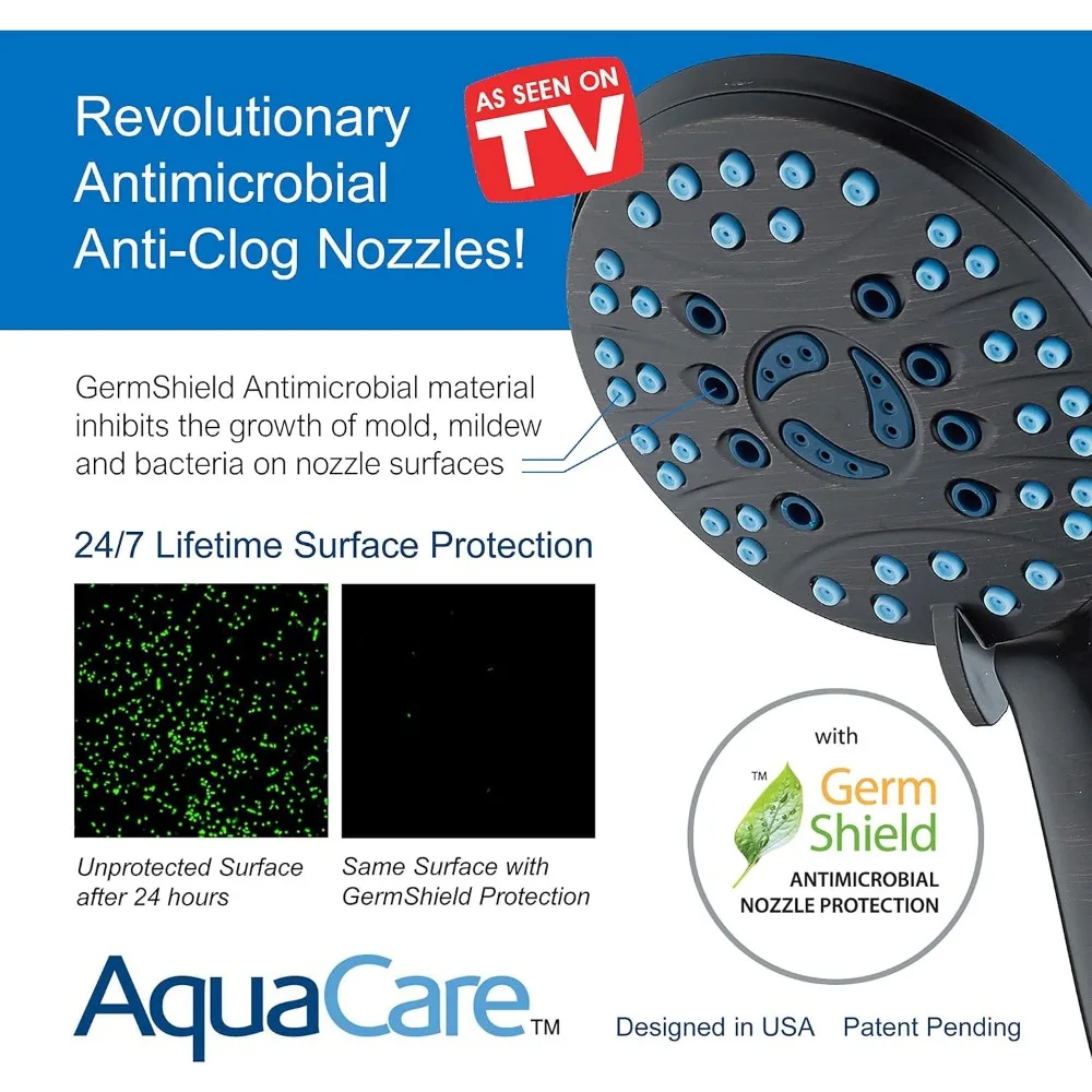 • PURE-CLEAN PROTECTION – Studies show that ordinary shower heads are often infested with grime that rapidly grows overnight, then gets flashed out in your face with the morning shower. That’s why keeping your showerhead clean is essential for good shower hygiene. AquaCare nozzles are made with special revolutionary material that works 24/7 on molecular level to protect from degradation. This protection is 100% safe and effective for the life of the product and can never wear off