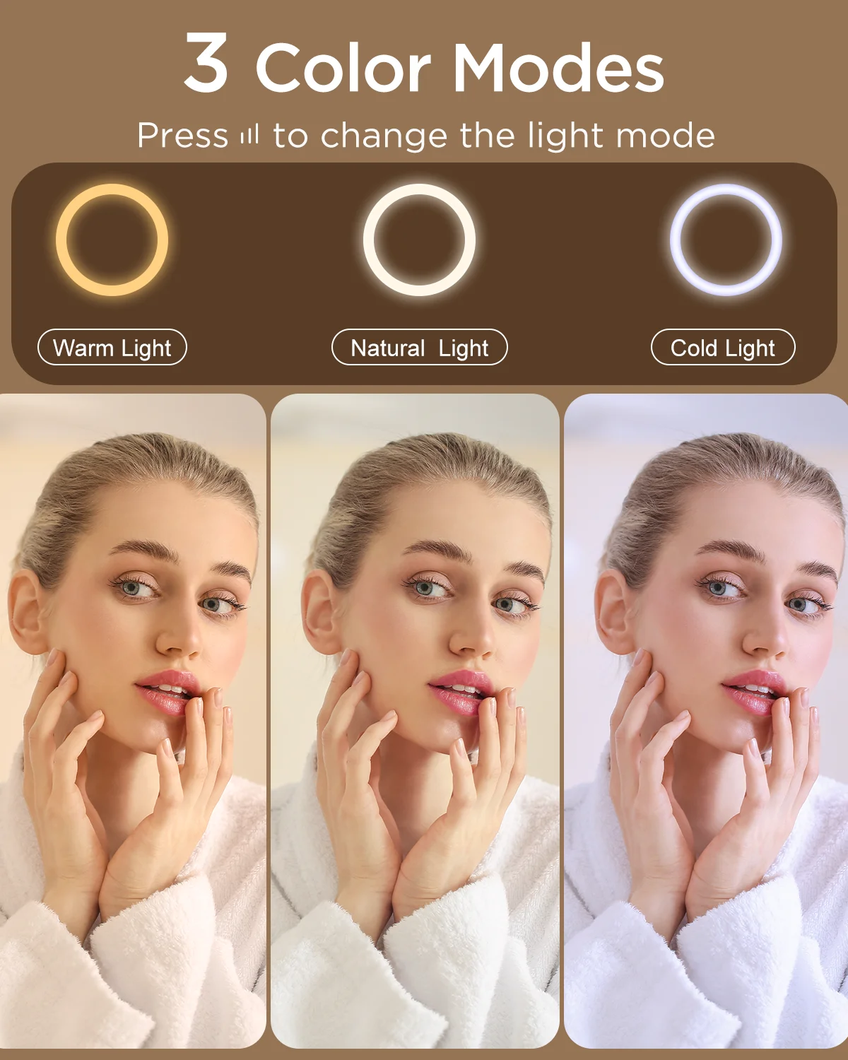 HD Glass & 10X Magnification: This mirror with lights is made of high-definition and high-quality glass, perfectly reflecting your overall makeup. Comes with a 10x magnifying mirror, you can stick it on the illuminated mirror to draw detailed makeup on your face.