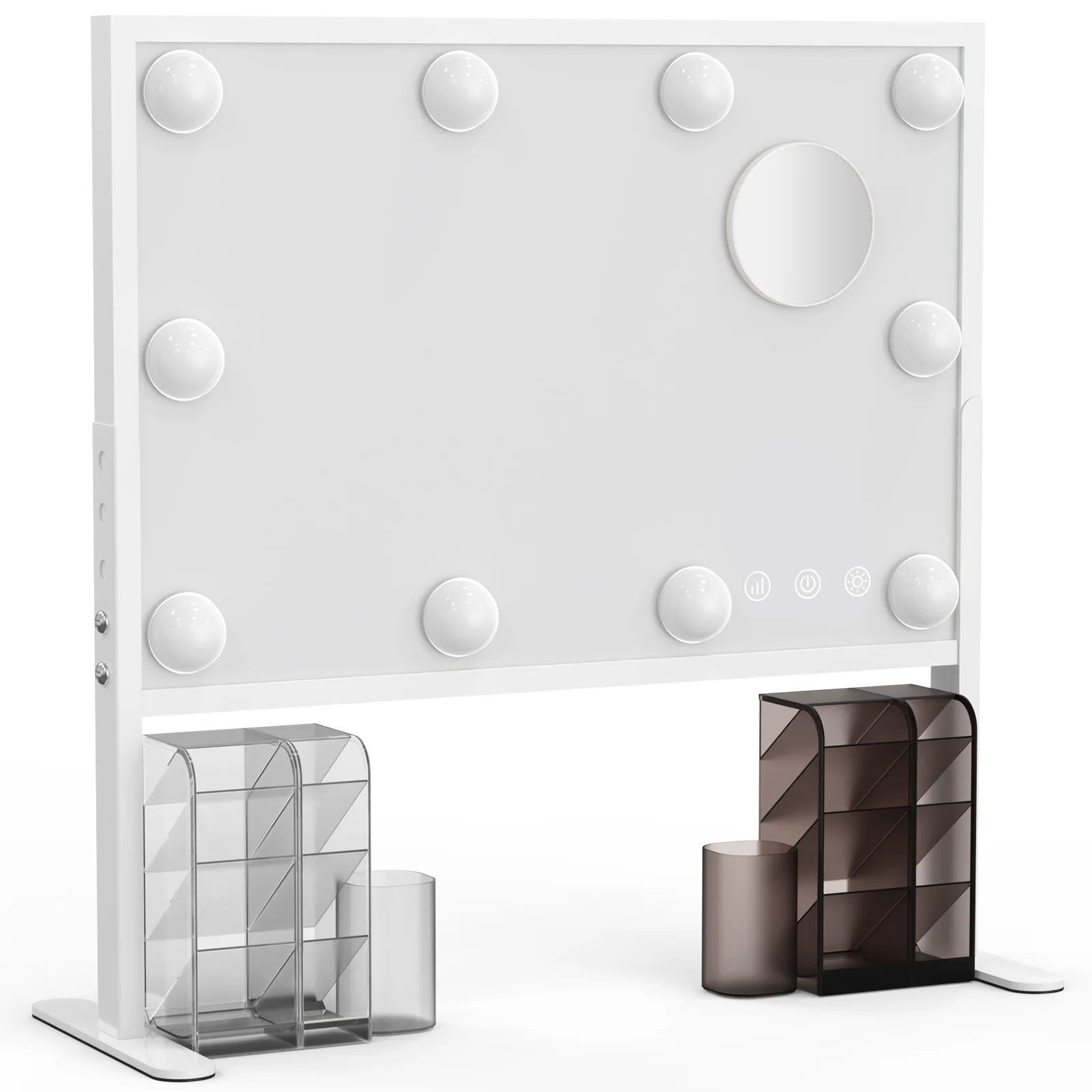 Multi-functional Makeup Experience: The USB charging port on the right side of the Hollywood Magic Mirror makes it easy to charge your cell phone or other electronic devices, and it comes with two cosmetic organizers. This design combines lighting, charging and storage functions in one, making your makeup process more efficient and enjoyable.