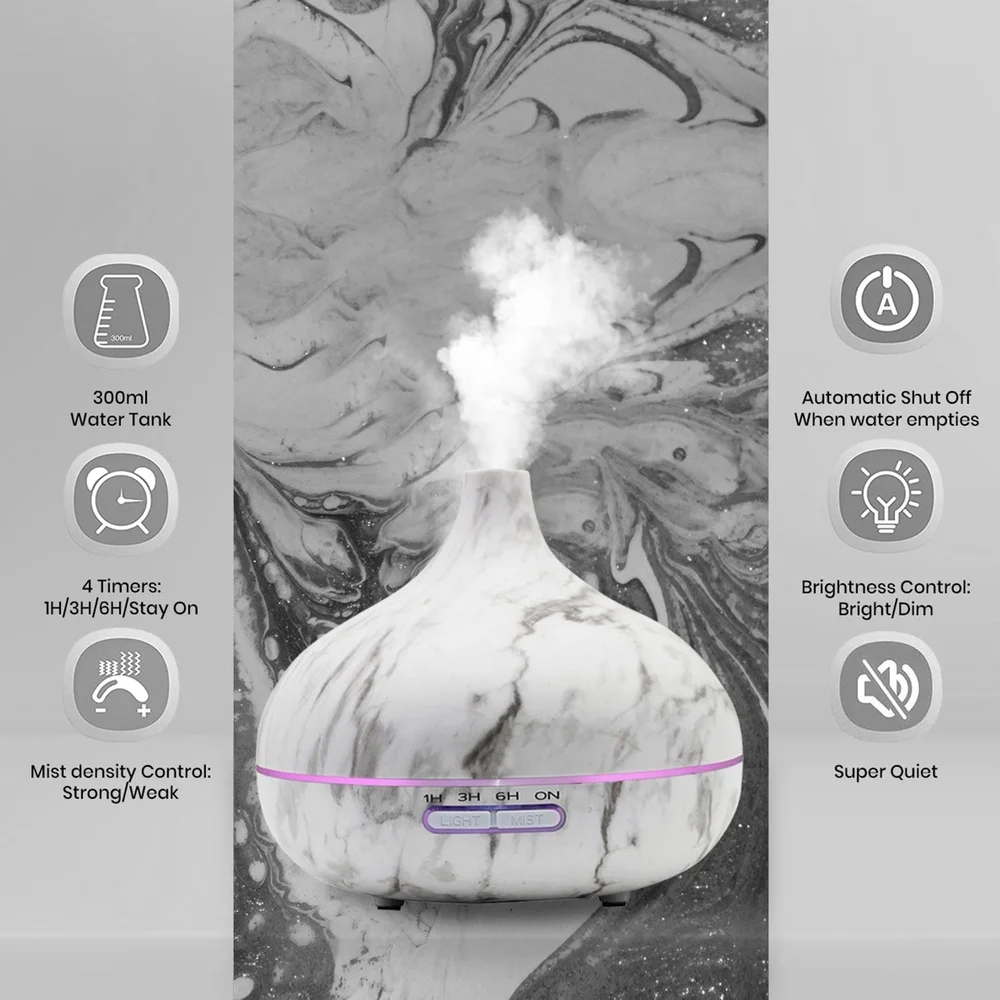 Sleek, chic design that complements any decor style – This elegant fragrance diffuser with timer instantly elevates any room with its sophisticated, sculptural shape and beautiful wood grain look. Choose between 7 LED light colors to suit the mood of the moment or create a relaxing atmosphere to fall asleep to. Our LED diffuser portable humidifiers make perfect housewarming gifts, office gifts, new home gifts, and birthday gifts for women & men alike.